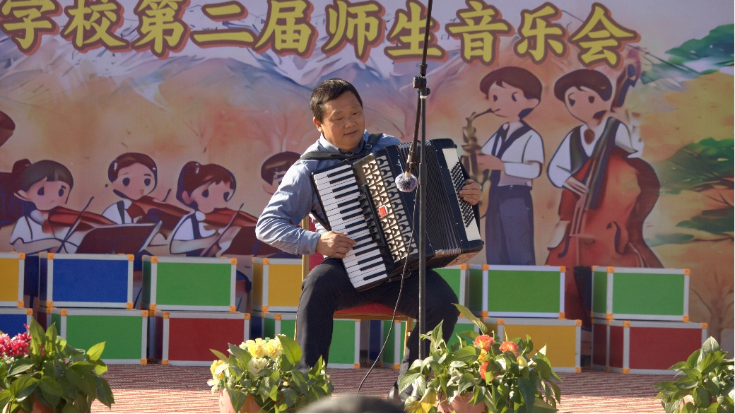 支教队副队长、音乐学院副院长彭传山演绎的手风琴曲《新疆民歌联奏》轻快活泼,钢琴独奏《保卫黄河》气势磅礴,将现场爱国热情推向高潮。