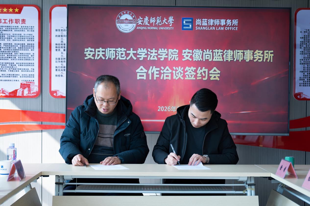 会上,法学院与安徽尚蓝律师事务所签订实践教学基地、毕业生就业基地共建协议。双方围绕毕业生就业合作、学生专业实习安排、科研项目联合攻关、青年律师职业素养提升等议题展开深入交流,明确了后续合作的具体方向与实施举措,为校所协同发展奠定了坚实基础。