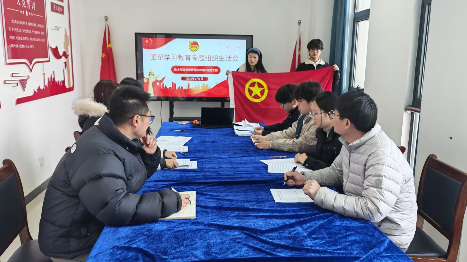 3月6日,美术学院视觉传达设计专业2024(2)班团支部召开团纪学习教育专题组织生活会示范会。美术学院党委副书记金忠良到会指导,学院团委负责老师、班级辅导员及支部全体团员参会,会议由班级团支部书记崔雨晴主持。