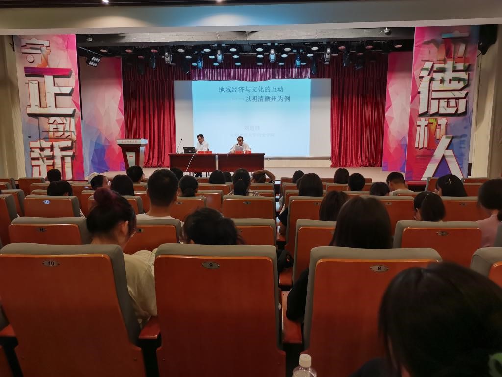 5月14日上午,应人文学院邀请,安徽师范大学历史学院博士生导师刘道胜教授在菱湖校区图书馆学术报告厅作了题为“区域经济与文化、社会互动:以明清徽州为中心”的学术讲座。讲座由人文学院梁诸英教授主持,人文学院文史专业的研究生和本科生聆听了报告。