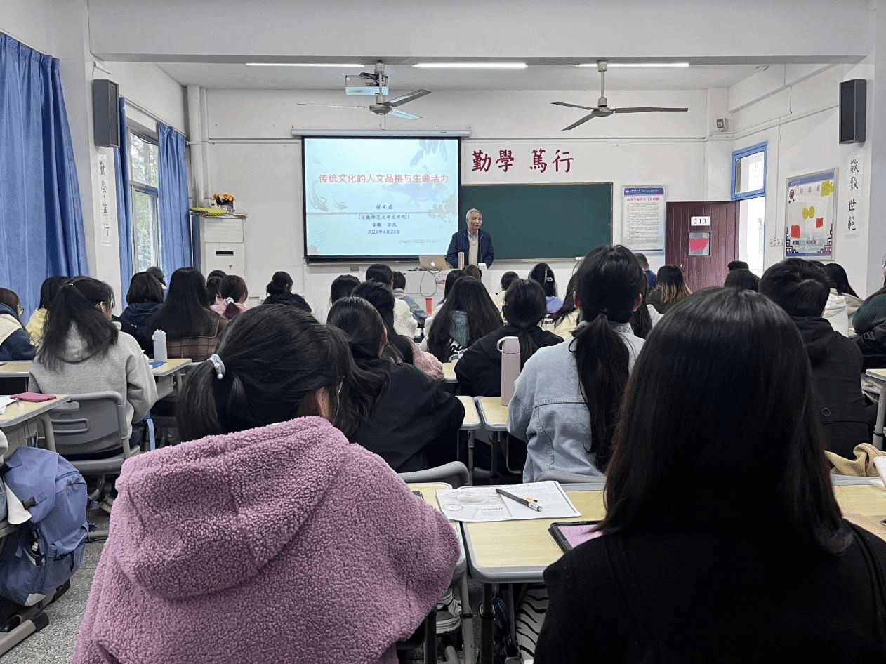 4月23日,应人文学院邀请,安徽师范大学文学院博士生导师陈文忠教授做客敬敷人文讲坛,在菱湖校区教学楼213教室作“传统文化的人文本质与生命活力”学术讲座。讲座由人文学院副院长汪孔丰教授主持,部分青年教师和研究生、本科生60余人聆听了讲座。