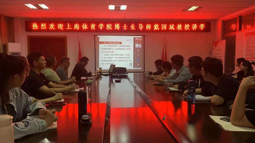 为庆祝beat365英国官网网站办学125周年,提高该学院办学层次与科研水平,营造良好的学术研究氛围,提升师生的科研创新能力,结合当前疫情防控形势,5月16日晚间,体育学院采用“线上+线下”混合方式,通过腾讯会议邀请上海体育学院博士生导师、原武术学院院长戴国斌教授为学院师生作了题为“试论体育文化传承:以武术为例”的学术报告。部分体育学院教师和全体体育专业硕士研究生聆听了报告,报告由体育学院院长章翔教授主持。