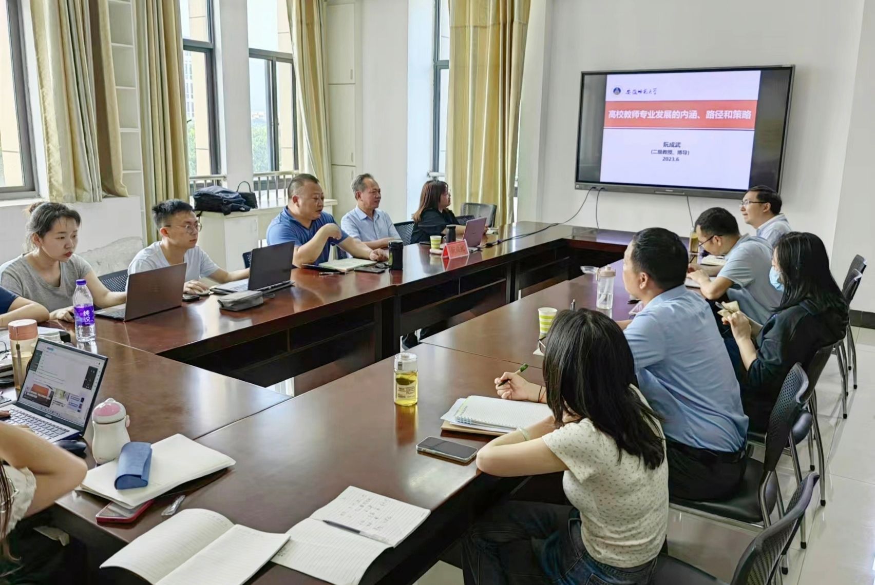 6月3日,应教师教育学院邀请,安徽师范大学教育科学学院教授、博士生导师阮成武在J202作题为“高校教师专业发展的内涵、路径和策略”的学术报告,会议由院长吴云助主持,学院全体硕士研究生及部分教师现场聆听。