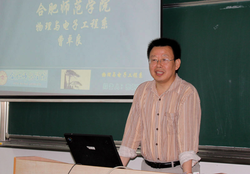 6月7日,合肥师范学院物理与电子工程系主任、安徽大学博士生导师曹卓良教授应邀来beat365官网担任省级基础课实验教学示范中心建设项目验收鉴定专家。曹教授来beat365官网期间,受到党委书记何小祥,院长朱士群、副院长闵永新、副院长张群的热情接待。6月8日,曹卓良教授为物理与电气工程学院物理学专业学生和部分青年教师作了题为“量子密码学”的学术报告。报告由物理与电气工程学院院长张杰教授主持。