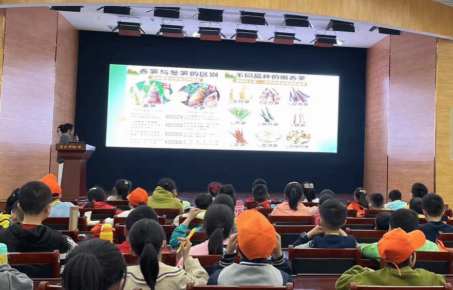 讲座主题为餐桌上的植物学,张圆圆博士以蚕豆、春笋等春季中常见的植物性食物为导入,向孩子们深入浅出地讲解了营养学的相关知识,并对孩子们的疑问进行了解答。张圆圆博士的讲座生动有趣、气氛活跃,激发了孩子们对食品科学与生物学的好奇心,受到与会师生的一致好评。