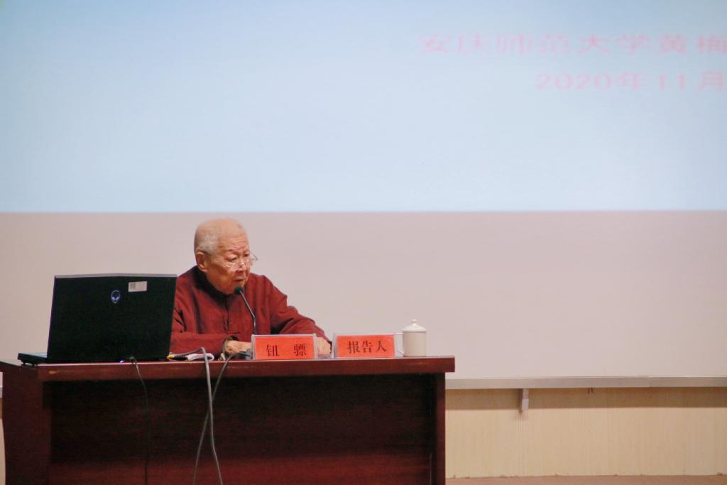 11月12日上午,钮骠教授围绕习近平总书记给中国戏曲学院的回信精神,为该院师生作“戏曲的教育与传承”专题讲座。讲座伊始,钮骠教授深情地说,写京剧史离不开安庆,这次安庆之行,他是来寻根的。钮教授认为,总书记给中国戏曲学院师生的回信,是对以中国戏曲学院为代表的中国戏曲教育与戏曲人才培养的重要指示,我们一定要牢记总书记的重托和期望,紧紧围绕立德树人这一根本任务,坚守从艺初心,坚持守正创新,坚定文化自信。在讲座中,钮教授基于自身丰富的求学从艺经历与丰厚的教育教学实践,并从诸多前辈大师如梅兰芳、程长庚、杨小楼、叶春善等人的舞台实践举例,深入浅出地向大家解读了“守正创新”对于繁荣发展戏曲事业的重要性,并一再勉励beat365官网师生一定要大力弘扬程长庚精神,把我们的安徽戏曲特别是黄梅戏艺术传承发展好;作为地处戏曲之乡的beat365英国官网网站也有责任有义务把黄梅戏这一戏曲瑰宝传承发展好。