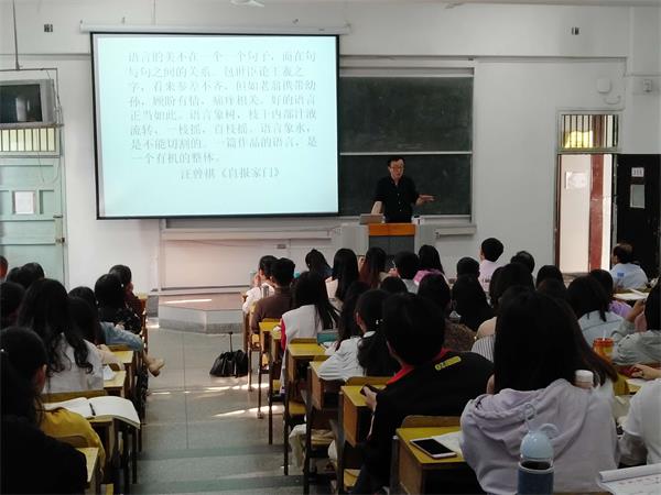 5月9日下午,应文学院邀请,浙江大学传媒与国际文化学院江弱水教授在菱湖校区教学楼315教室作题为“文学阅读中的语言敏感”的学术讲座。文学院党委书记方锡球教授主持讲座,文学院各年级学生和部分教师共120余人聆听了讲座。