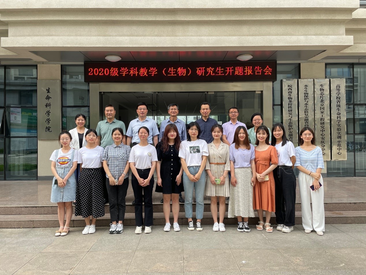 5月28日上午,生命科学学院学科教学(生物)专业2020级11名硕士研究生在G411会议室进行学位论文开题报告会。学院特邀请合肥师范学院生命科学学院院长徐忠东教授担任专家组组长,专家组成员有安庆医药高等专科学院副校长朱庆丰教授、学院院长周多奇教授、学院副院长吴彦教授、项小燕教授、李从虎副教授,报告会由周多奇主持。