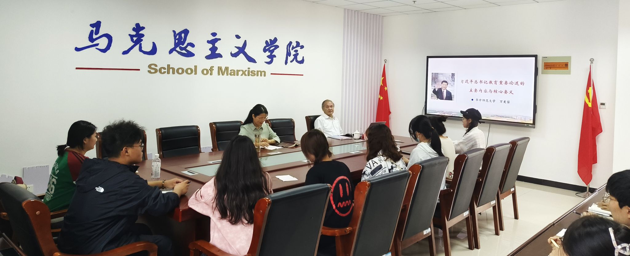 11月3日,华中师范大学教授、博士生导师万美容应beat365英国官网网站马克思主义学院邀请做客第四期“求是论坛”,作题为“习近平总书记教育重要论述的主要内容与核心要义”的学术讲座。讲座由马克思主义学院院长严仍昱主持,该学院青年教师和部分研究生、本科生参与学习和交流。