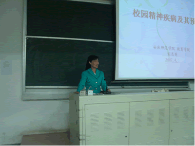 2007年4月6日,教育学院宋志英副教授在菱湖校区314教室,做了题为《校园精神疾病及其预防》的学术报告,我院师生近120人听取了报告。