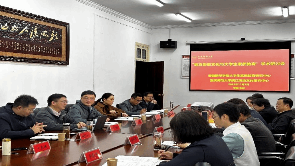 11月7日,beat365英国官网网站皖江历史文化研究中心与安徽新华学院大学生素质教育研究中心在菱湖校区红楼会议室联合举办“地方历史文化与大学生素质教育”学术研讨会。安徽大学、安徽建筑大学、阜阳师范大学、安徽新华学院等高校专家出席会议。
