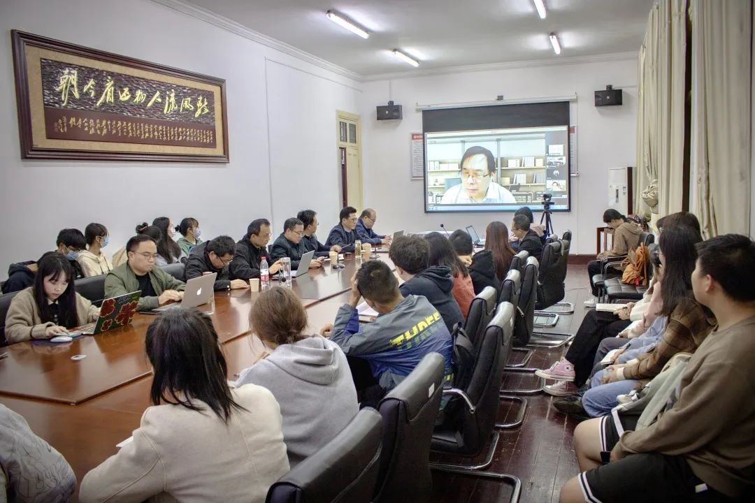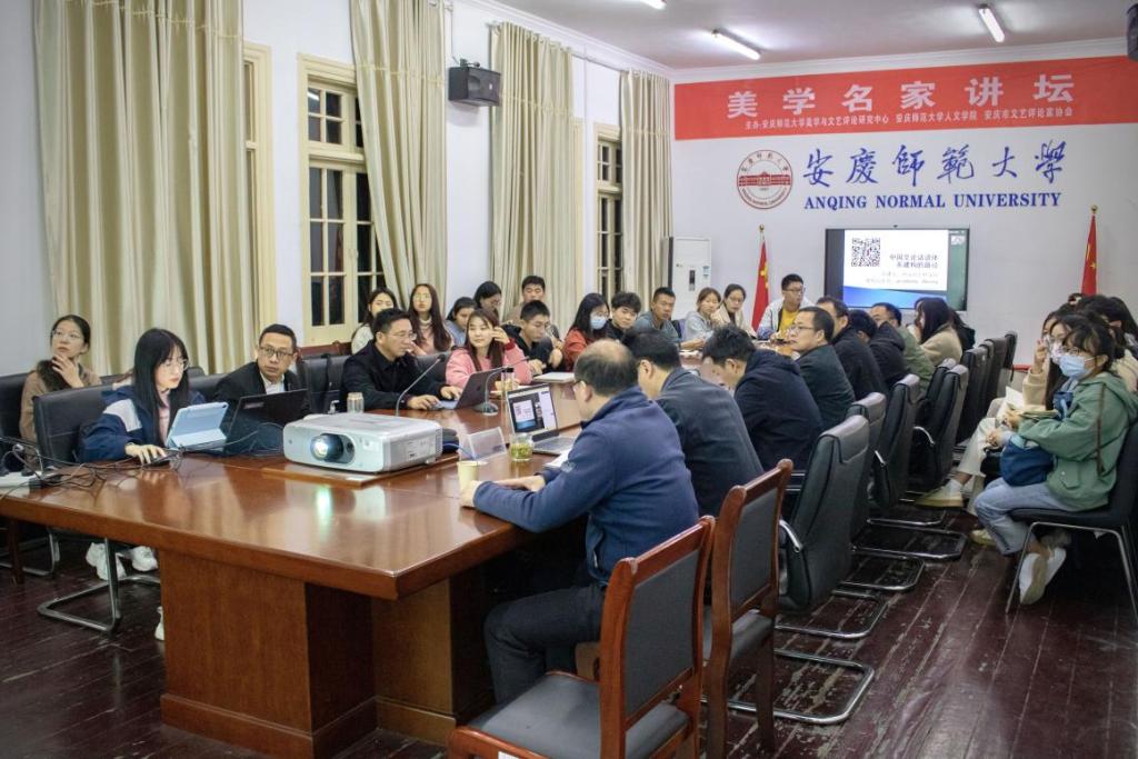 11月4日,由人文学院、安徽省文艺评论基地beat365英国官网网站美学与文艺评论研究中心和安庆市文艺评论家协会联合主办的“美学名家讲坛”第二讲在红楼二楼会议室顺利开讲。中华美学学会会长、中国中外文艺理论学会会长高建平教授应邀作了题为“怎样建立中国文论话语体系”的线上讲座。讲座由中心主任江飞教授主持,人文学院部分教师和硕士生、本科生近50人到场学习,线上参会人数逾400人。