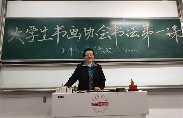 11月2日晚龙山校区教学楼D楼305室,图书馆研究馆员大学生书画协会辅导教师黎莉给本年度书法课堂第一课开讲,来自各院系不同专业的270多位书法协会新生会员,本着要写一手好字的初心聆听了黎老师的报告。