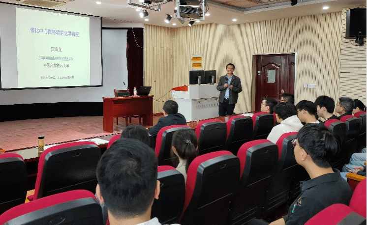 5月24日,中国科学技术大学讲席教授、博士生导师、国家重点研发计划项目首席科学家江海龙在F411报告厅给学校部分教师和学生作题为“催化中心微环境的化学调控”学术报告。报告由化学化工学院副院长官叶斌主持。