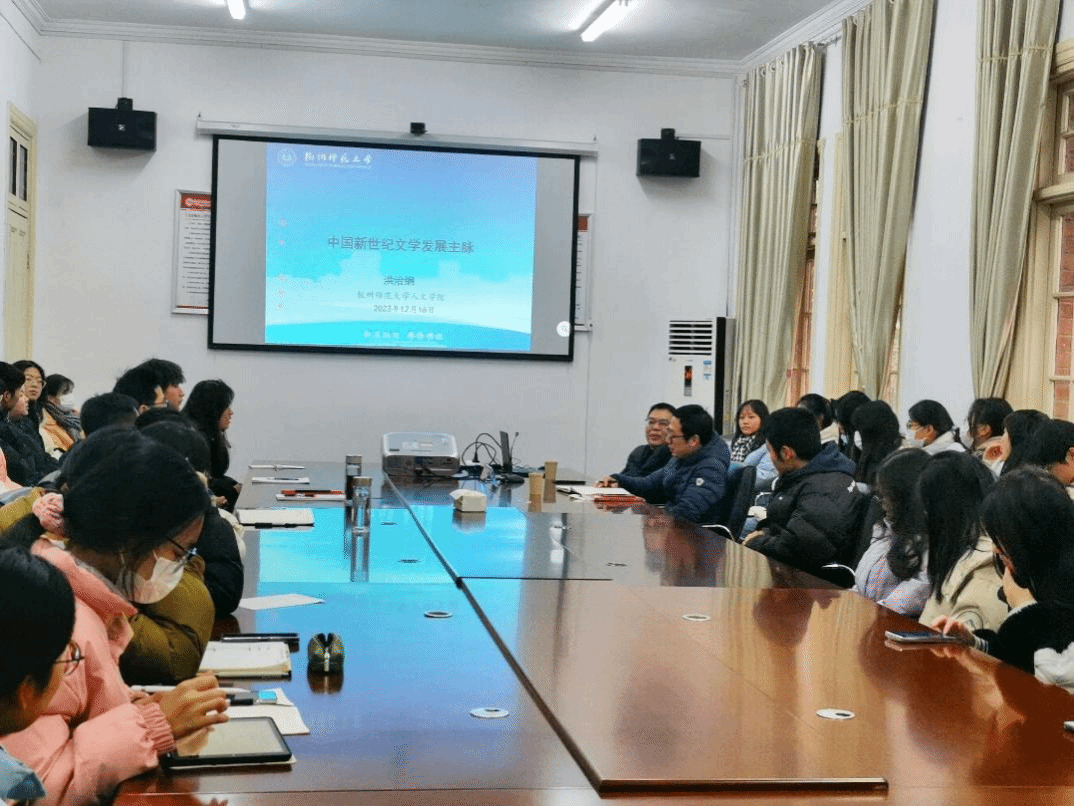 12月16日,由安徽省文艺评论家协会指导,beat365英国官网网站美学与文艺评论研究中心和安庆市文艺评论家协会联合主办的“皖派批评家菱湖大讲堂系列讲座”第六期在红楼二楼会议室顺利举行。中国小说学会副会长、中国当代文学研究会副会长、杭州师范大学人文学院院长、教授、博导洪治纲应邀作了题为“中国新世纪文学发展主脉”的讲座。本次讲座由人文学院副院长、美学与文艺评论研究中心副主任金松林教授主持,该院部分青年教师、研究生和本科生参加了本次活动。