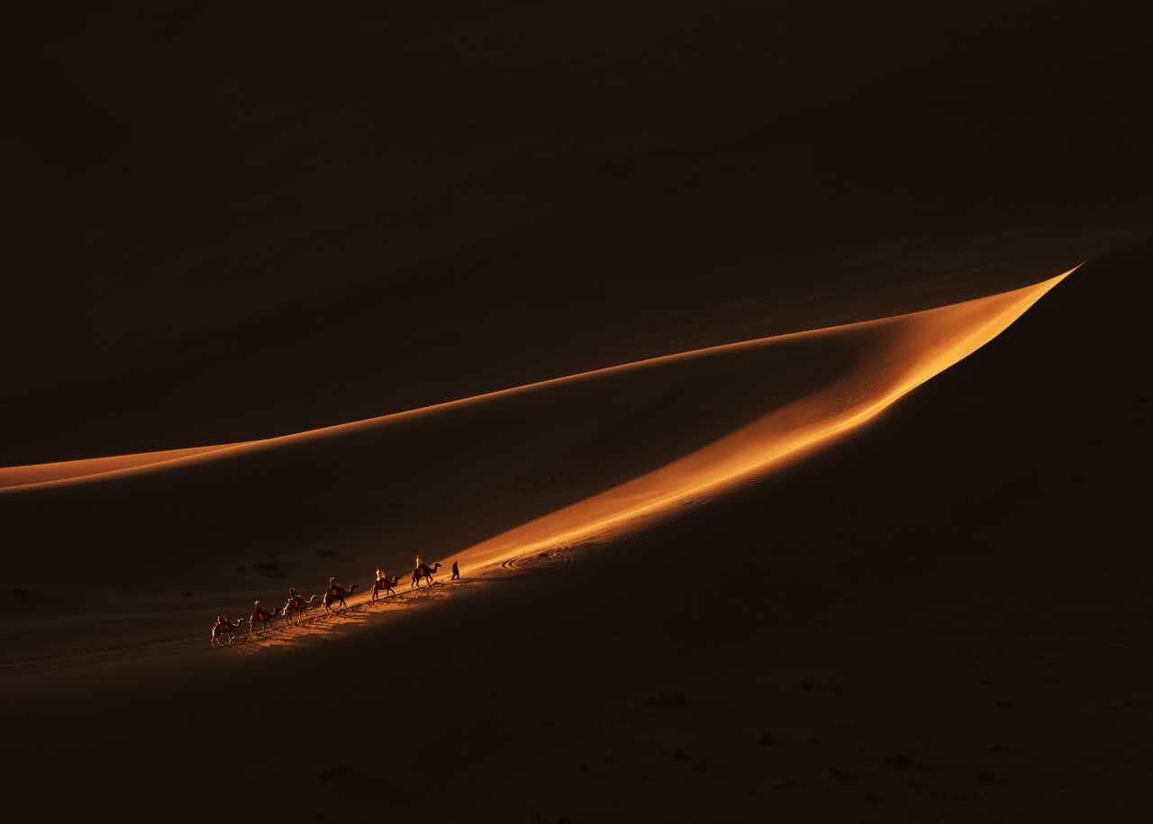 徐金星走遍国内各地,游历了十几个国家,为了拍出与别人镜头中不同的沙漠,他拿着三脚架站在沙漠之上,等待着傍晚的日光撒在沙漠之上,恰巧一群骆驼从沙峰走过,光影结合的大作也就此而成,“为了这个‘沙漠之舟’我等了很久,终于得到了自己想要的效果。”徐金星告诉学生们,他正是带着这种激情,拍出一幅又一幅作品。