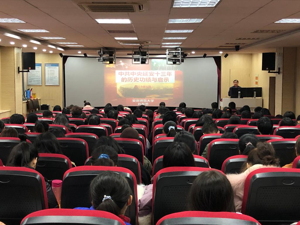 走进延安十三年,刘友忠博士分三个阶段——“落脚陕北谱新篇”、“延安岁月铸辉煌”、“转战陕北定乾坤”——通过一段段或艰难曲折,或激情豪迈的历史记忆,借由一系列影响和改变中国历史进程的重大事件,带领同学们感悟延安十三年中国革命从挫折到胜利,中国共产党从弱小到强大的艰辛历程和辉煌功绩。走出十三年,刘友忠博士阐述了宝贵的延安精神给我们留下了深刻的现实启示——“坚定理想信念”“坚持思想解放、实事求是”“全心全意为人民服务”“弘扬艰苦奋斗精神”。