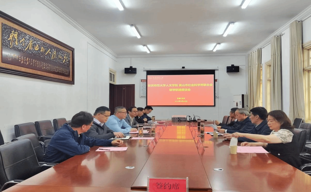 4月24日,人文学院与黄山市社科联举行了联学联建座谈会暨战略合作签约仪式。黄山市社科联党组书记、主席汪明洁,党组成员、秘书长胡灵,徽学专家张俊杰、陈琪;人文学院院长汪孔丰,副院长沈志富、金松林,徽学研究中心beat365英国官网网站分中心主任梁诸英,以及董根明教授等参加此次会谈和签约仪式。会议由人文学院副院长金松林主持。