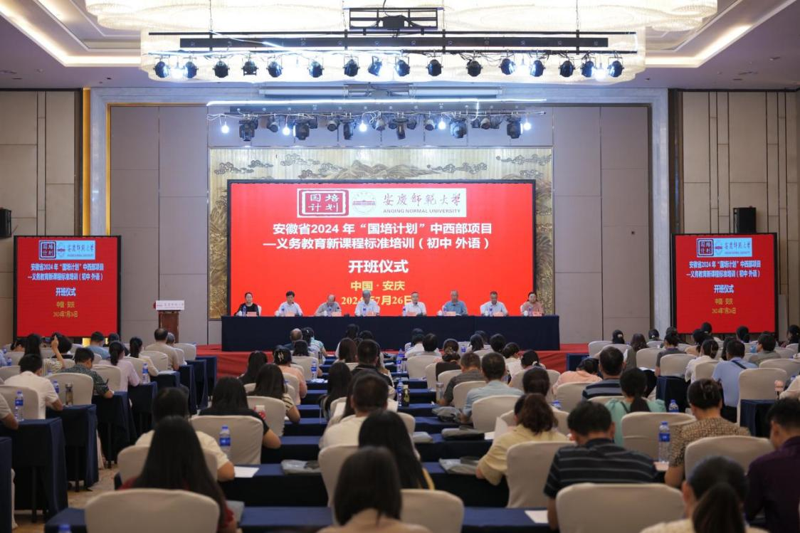 7月26日,教育部义务教育英语课程标准修订组组长、上海外国语大学梅德明教授应邀出席外国语学院承办的安徽省2024年“国培计划”中西部项目-义务教育新课程标准培训(初中 外语)开班仪式,并作题为《指向学生核心素养发展的教学评理念与实践》的主旨报告。外国语学院部分教师和来自安徽省各地市300名初中英语骨干教师聆听了报告。报告由外国语学院院长、该国培项目首席专家王先荣主持。