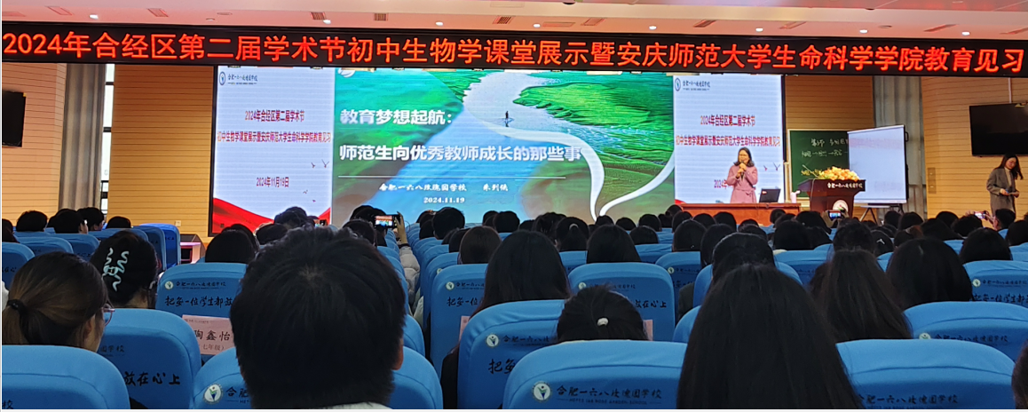 11月19日,合肥一六八玫瑰园学校朱列侠老师在玫瑰园学校东校毓秀楼三楼报告厅开展了题为《教育梦想启航:师范生向优秀教师成长的那些事》的专题讲座。beat365英国官网网站生命科学学院2022级生物科学专业本科生、2024级学科教学(生物)研究生及部分学科教学论教师参加了报告会并进行了深度交流,报告由生命科学学院副院长李从虎主持。