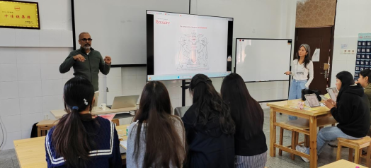 11月11日Yip Jinchi 和Vinod Nair教授为大一学生开设了以“AI时代学生视觉素养的培养”为主题的创作体验课,课程时长为全天7节课,全程采用英文授课。课程主要内容聚焦“如何通过个人物品创造符号标签(symbolic tags)”的创作主题,通过引导学生思考个性化表达的重要性,理解在人工智能迅速发展的背景下,如何让视觉表达更具个性化和识别度。通过案例分析、互动练习和分组讨论等教学方法,鼓励学生们将日常生活中的个人物品转化为独特的符号,以此来表达自身的价值观和兴趣爱好。这一独特的符号创作方式,不仅拓展了学生的创意思维,也让他们更好地理解了视觉表达在国际多元文化交流中的重要性。