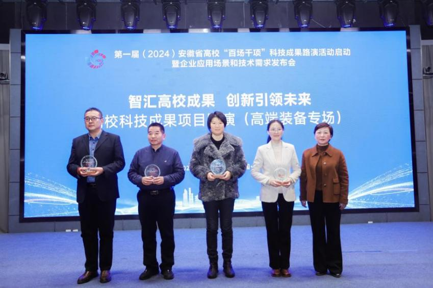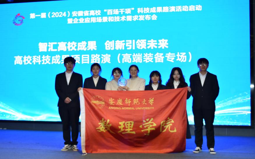 近日,由安徽省教育厅、安徽省国资委、安徽省工信厅主办的首届安徽省高校“百场千项”科技成果路演活动暨企业应用场景和技术需求发布会在安徽创新馆举行。全省38所高校累计2048项科技成果经过层层筛选与专家评审,最终来自15所高校的30个项目进入路演环节,数理学院孙春艳博士带领“科创明新”学生团队参加路演活动,并荣获“优秀项目”。