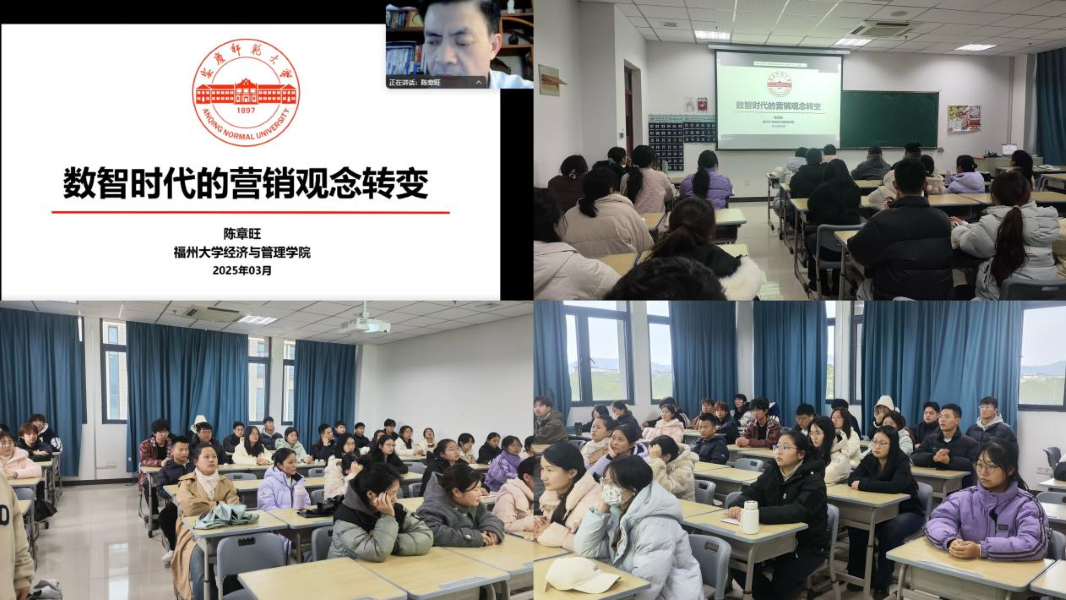3月3日,由科研处、经济与管理学院联合主办,安徽省数字经济研究中心、经济与管理学院研究生党支部承办的“经管有道”第23期学术报告会开讲。本期活动的主讲嘉宾为福州大学陈章旺教授,报告题目为“数智时代的营销观念转变”。经济与管理学院部分教师和市场营销专业学生到场聆听,报告会由余呈先教授主持。