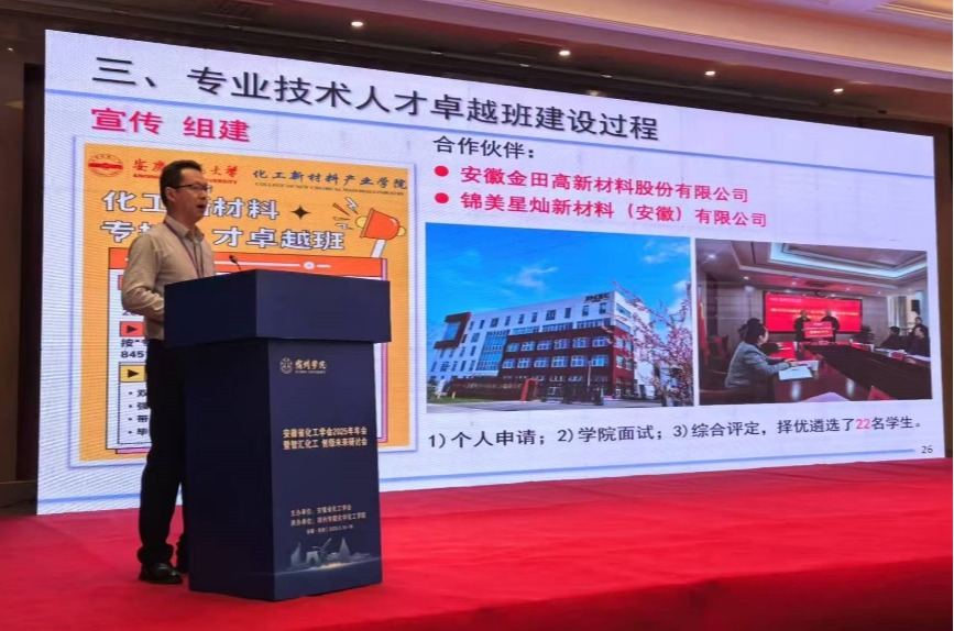 会上,官叶斌教授作了题为“创新校企协同育人模式 构建人才融合发展生态”的特邀报告,以“制药工程专技人才卓越班”“化工新材料专技人才卓越班”的建设成效为例,分享了beat365英国官网网站化工新材料产业学院在人才培养方面的经验做法。