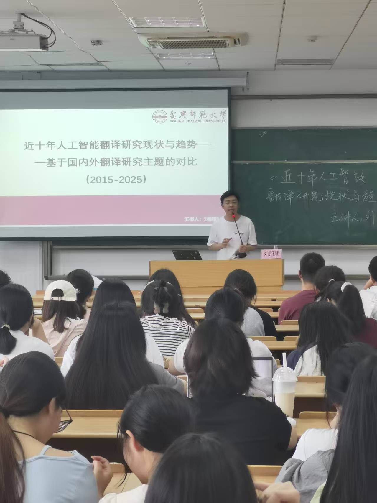 5月21日,外国语学院刘朋朋博士作题为《近十年人工智能翻译研究现状与趋势》的专题学术报告。外国语学院翻译专业本科生、研究生、部分教师参加了报告会。赵衢博士主持了报告会。