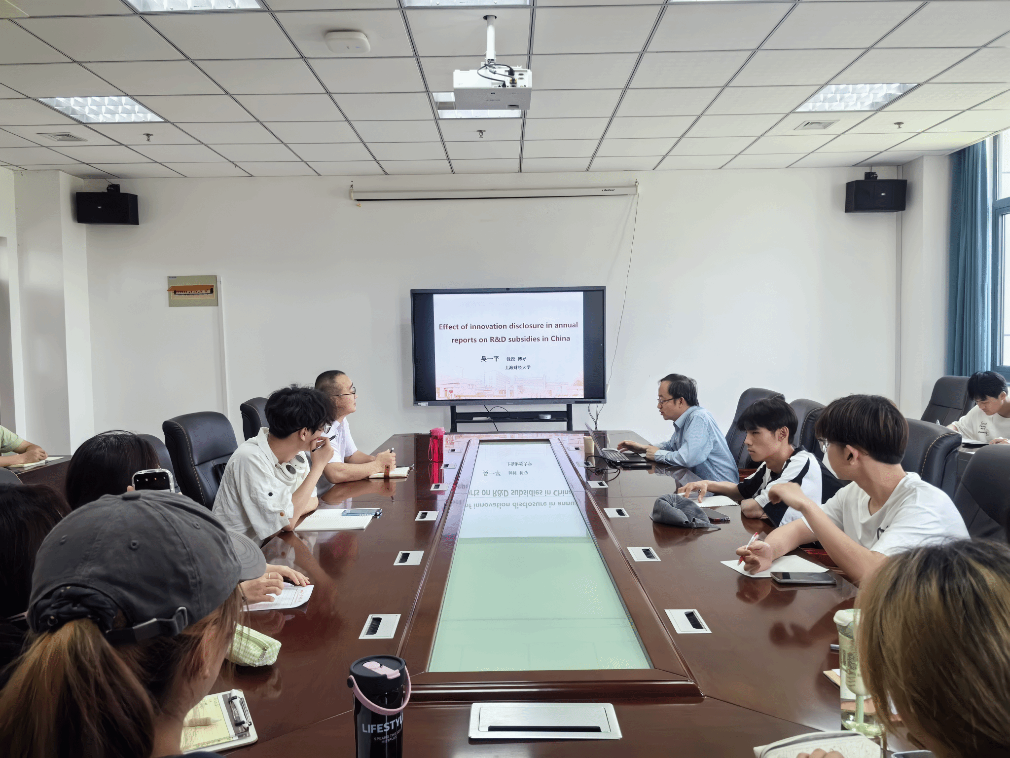 5月27日,由科研处、经济与管理学院联合主办,安徽省数字经济研究中心、经济与管理学院研究生党支部、预算绩效管理联合实训基地承办的“经管有道”第28期学术报告会成功举办。上海财经大学吴一平教授应邀作题为“Effect of innovation disclosure in annual reports on R&D subsidies in China”的学术报告,经济与管理学院部分教师和金融工程专业2024级陶因班同学参与学习,报告会由丁仕潮副教授主持。
