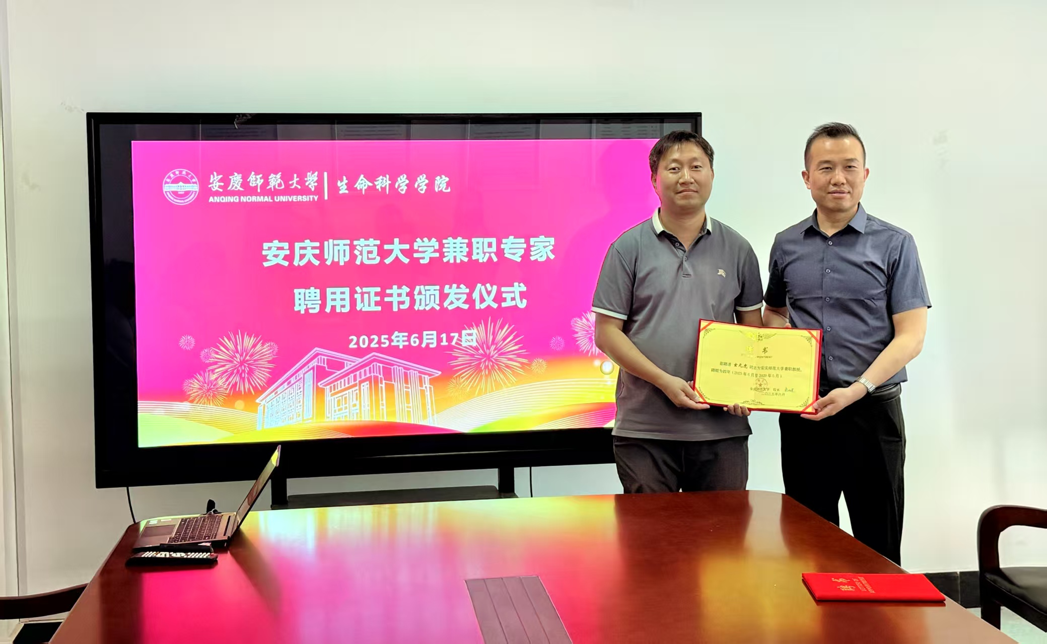报告会后,生命科学学院举办了beat365英国官网网站兼职专家聘用证书颁发仪式,由吴彦院长主持,聘请玄元虎同志为beat365英国官网网站兼职教授。