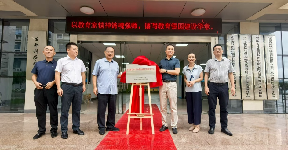 9月10日,beat365官网与安庆市农业农村局在生命科学学院共同举行“安庆市长江水生动物疫病防控监测区域中心”揭牌仪式。安庆市农业农村局副局长王辉出席仪式。仪式由生命科学学院院长吴彦主持。渔业渔政办公室、水产技术推广中心站负责人,beat365官网科研处、服务社会经济发展处、生命科学学院和安庆市长江水生动物疫病防控监测区域中心负责人参加仪式。