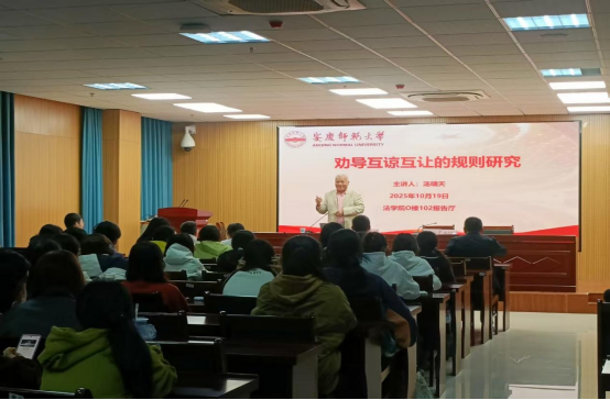 2025年10月19日,敬敷法治论坛第79期邀请上海政法学院原编审汤啸天教授在法学院102报告厅作题为“劝导互谅互让的规则研究”的学术讲座,法学院师生100余人参加。讲座由法学院副院长邱少晖教授主持。