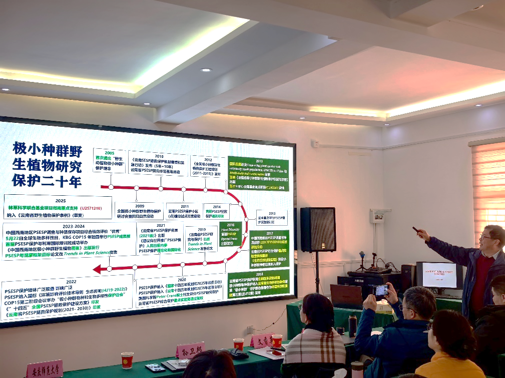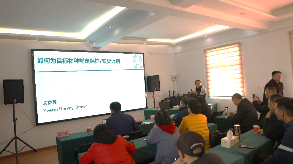 会议包括野外回归实践指导与学术报告两大环节。其中,报告会由鹞落坪保护区副主任张继民主持。中国科学院昆明植物研究所孙卫邦研究员、华南国家植物园文香英教授分别作专题报告。其中,文香英教授系统阐述了“如何为目标物种制定保护与恢复计划”;孙卫邦研究员结合华盖木等拯救案例强调极小种群野生植物回归要素与监测规范。