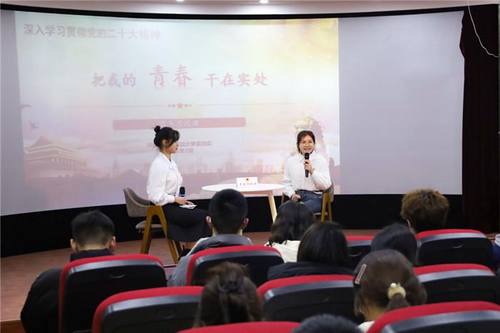 “开学第一课”围绕学习宣传贯彻党的二十大精神主线,通过讲述有滋有味、有声有色的青年成长故事,引导青年学生“扣好人生第一粒扣子”、思考青春如何作为,动员学生把学习奋斗的具体目标同民族复兴的伟大目标结合起来,把人生抱负落实到脚踏实地的行动中,走好、走稳新时代“赶考之路”。(文/刘芮青 图/朱秀萍)