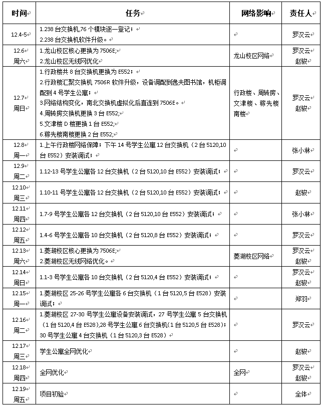 根据校园网络结构优化及学生公寓网络设备安装进度安排,部分区域网络将受影响,造成不便,敬请谅解!