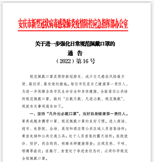 上一篇:安庆市关于进一步优化防控措施的通告