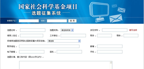 选题推荐人可登陆全国社科规划办网站“国家社科基金项目选题征集系统”进行填报推荐。