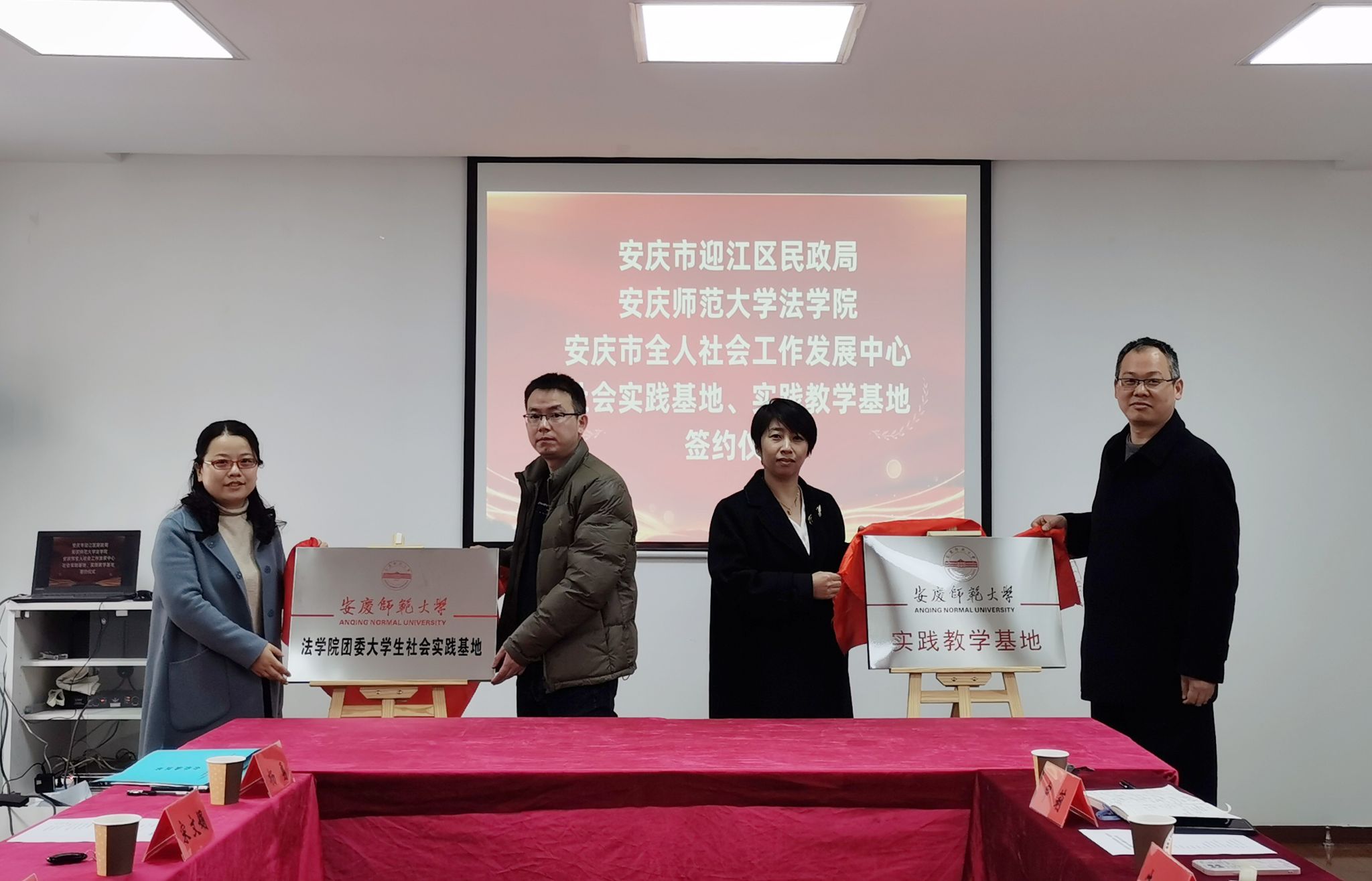 为更好地促进广大青年学子常态化、长效化学习雷锋精神,法学院与安庆市迎江区民政局、全人社会工作发展中心携手合作。3月3日,beat365英国官网网站社会工作专业实践教学基地、法学院团委大学生社会实践基地正式揭牌。