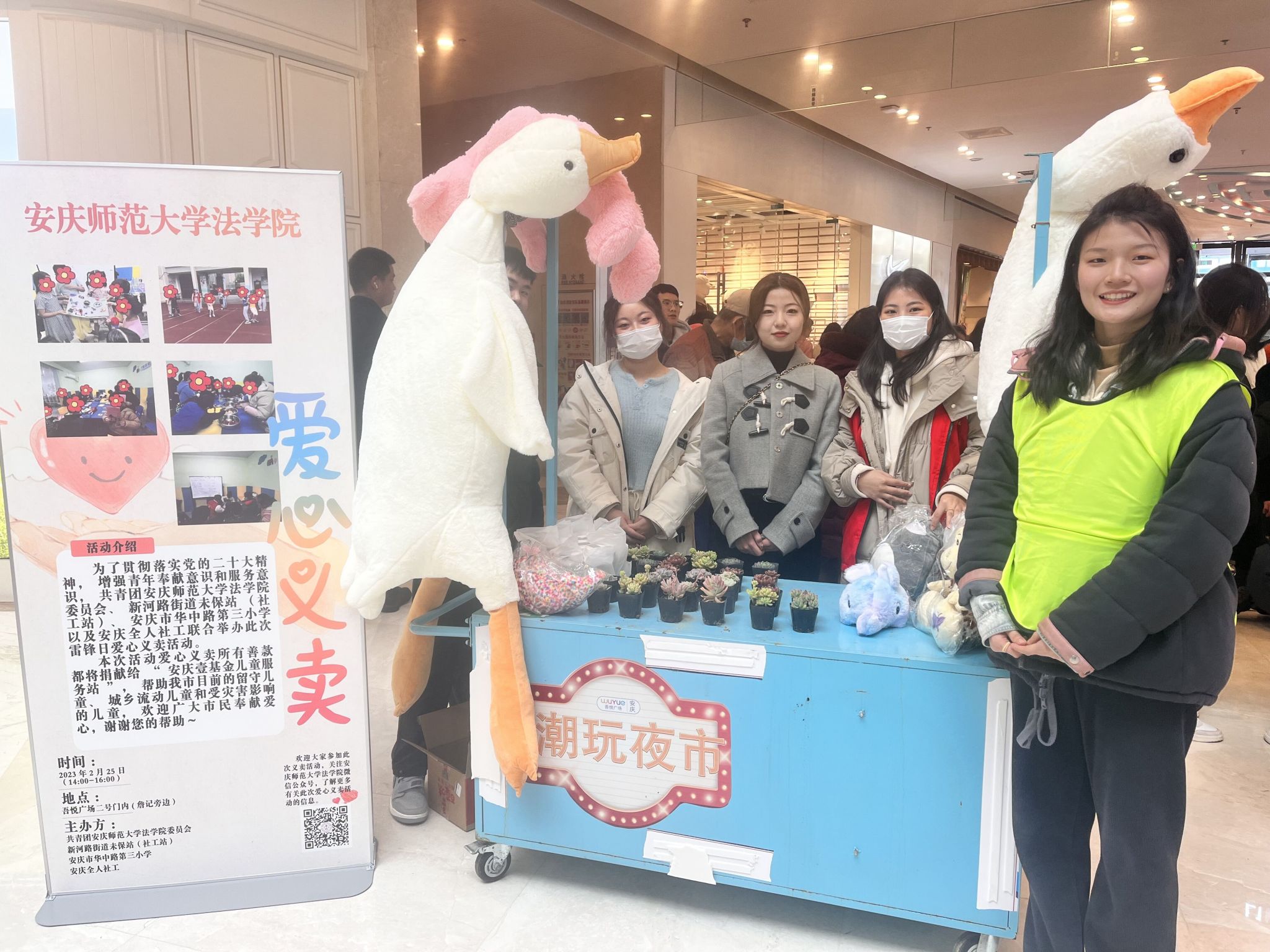 2月25日,在新河路街道未保站(社工站)、安庆全人社工的共同支持下,法学院的学生们携手安庆市华中路第三小学的孩子们来到安庆市吾悦广场摆摊设点,一同开启特殊的“专场”爱心义卖。据悉,这些义卖所得将全部捐献给安庆市壹基金儿童服务站,帮助市内的留守儿童、城乡流动儿童和受灾害影响的贫困儿童。