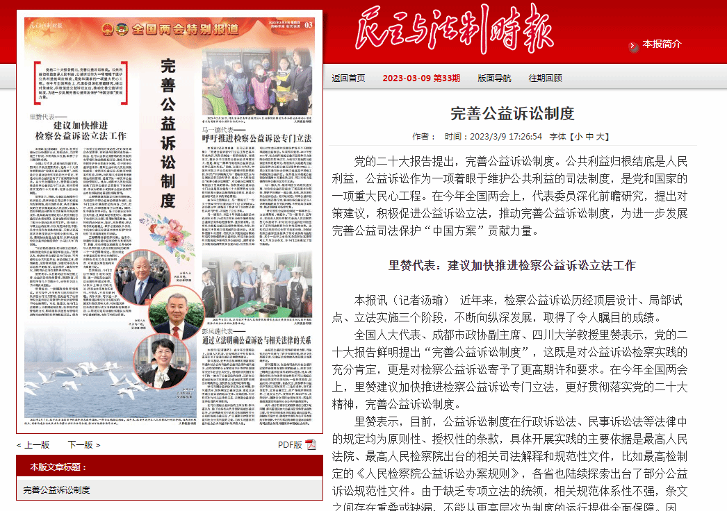 本报讯(记者潘巧) 在今年全国两会上,全国人大代表、beat365英国官网网站校长彭凤莲带来关于完善公益诉讼制度的建议。