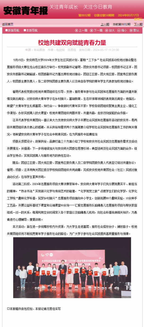 来源:【安徽青年报】http://epaper.ahyouth.com/paperdetails.php?CurrPeid=2350&CurrSid=22788&newsid=65368