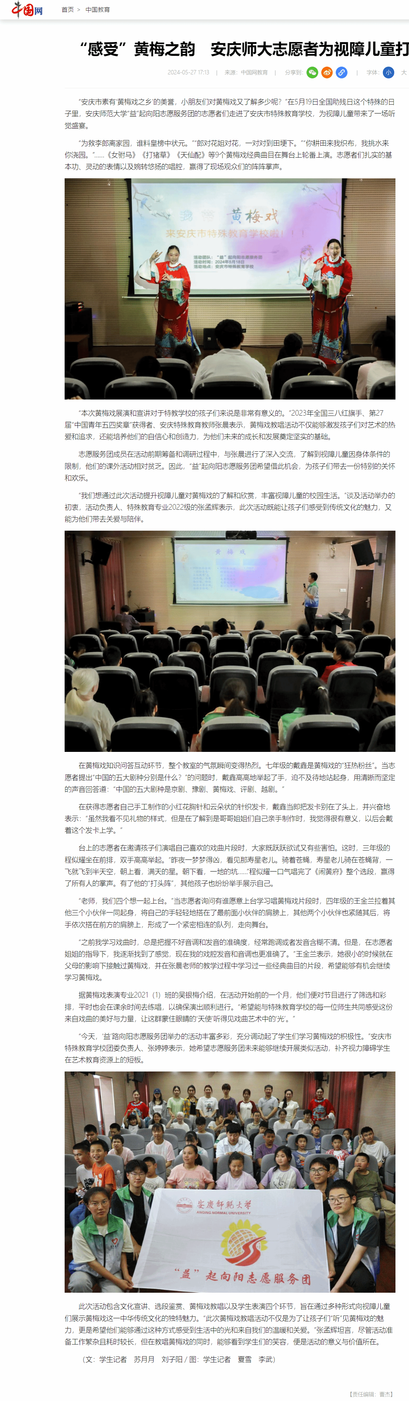 下一篇:安徽新闻网:全国助残日 “益”唱黄梅戏 安庆师大志愿者为视障儿童送来一场“听觉盛宴”