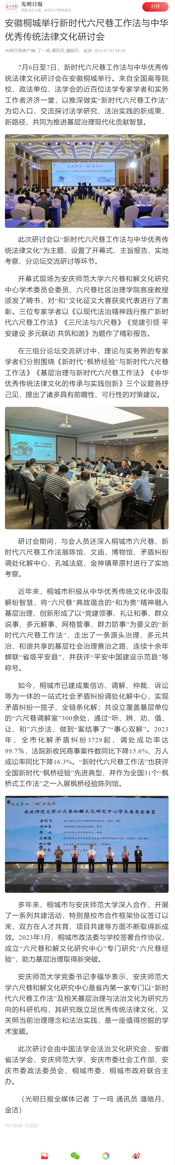 上一篇:人民网:新时代六尺巷工作法与中华优秀传统法律文化研讨会在桐城市举行