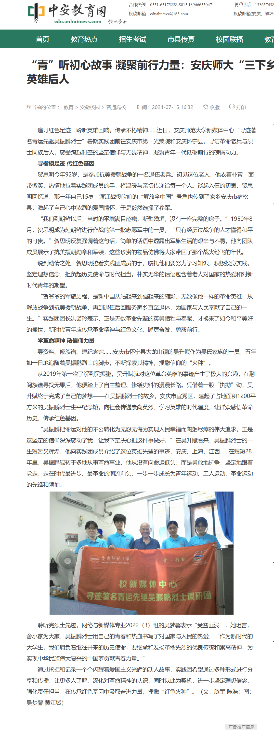 上一篇:安徽新闻网:红韵润童心,美育助童行 安庆师大大学生记者团创新宣讲延乔精神