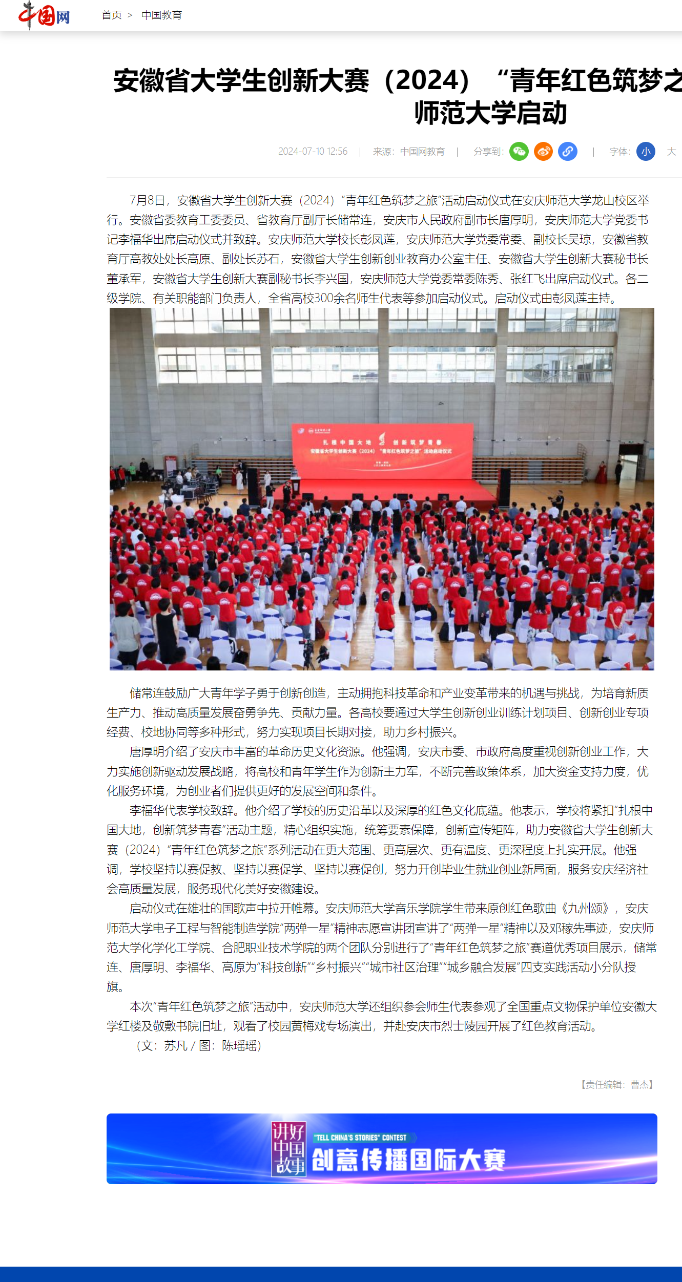 上一篇:安徽教育网:安徽省大学生创新大赛(2024)“青年红色筑梦之旅”活动在beat365英国官网网站启动