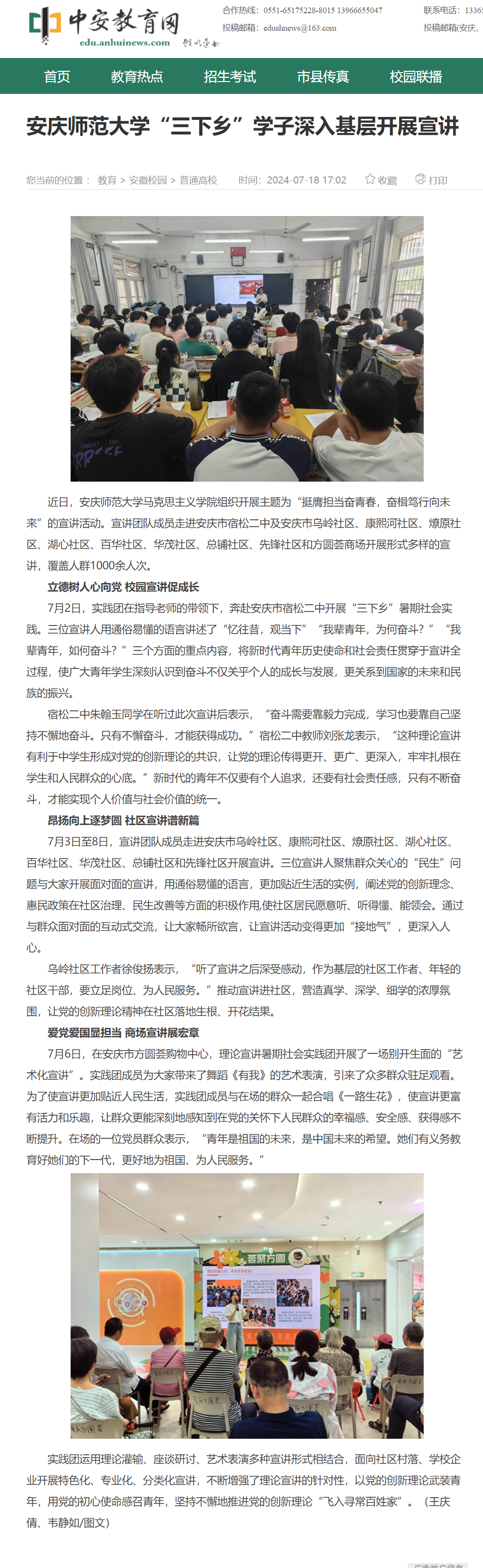 上一篇:中国网:用脚步丈量“爱国情” 安庆师大学子在实地调研中传承红色基因