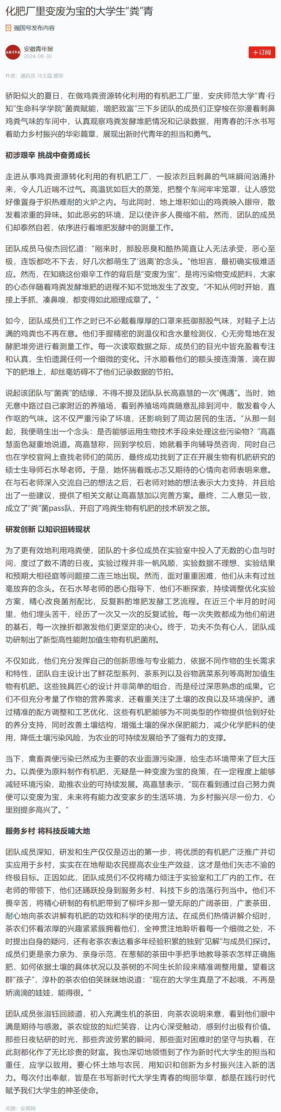 下一篇:人民网:化肥厂里变废为宝的大学生“粪”青