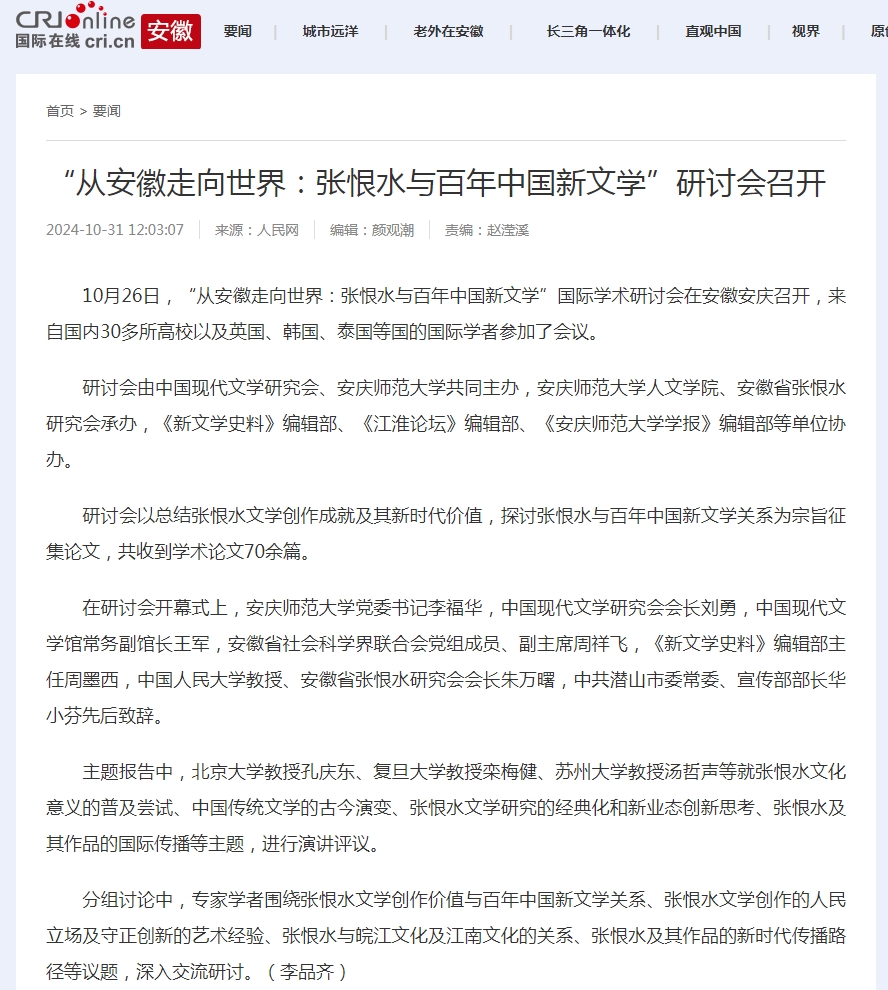 下一篇:安徽新闻网:“从安徽走向世界:张恨水与百年中国新文学”国际学术研讨会在beat365英国官网网站举行