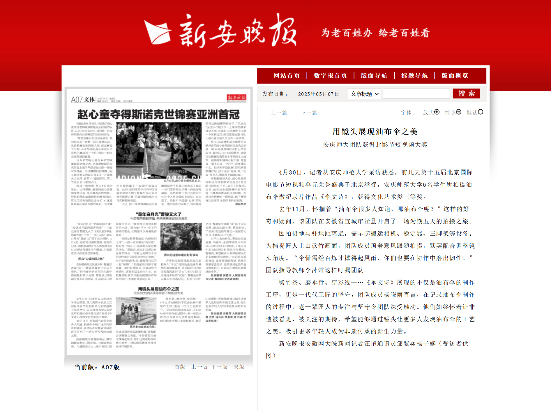 下一篇:学习强国:从竹林到银幕 安庆师大学子用镜头守护油布伞非遗记忆